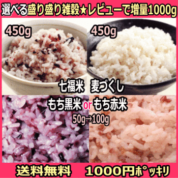 | 選べる!雑穀詰め合わせ福袋七福米450g+麦づくし450g+もち黒米orもち赤米 50g→100gほぼ半額バーゲン特価1,000円ポッキリ【送料無料】【日時指定・代引き・同梱不可】 |