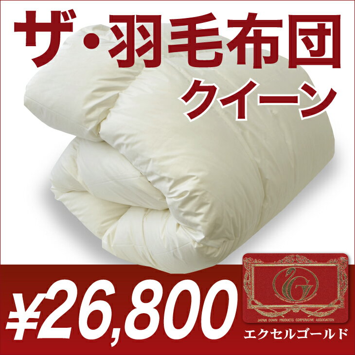 | ザ・羽毛布団 【エクセルゴールドラベル】 イングランドダウン90% クイーンサイズ(約210×210cm) 詰め物重さ:1.8kg、かさ高:15.5cm 【オシャレな収納ケース付】【高級・日本製】【送料無料】【羽毛ふとん・羽毛ぶとん】【02P02Dec11】 |