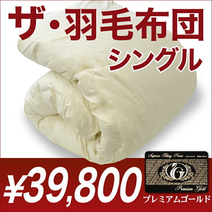 ザ・羽毛布団 【プレミアムゴールドラベル】(ポーランド産 ホワイト マザーグースダウン 95%) シングルロングサイズ(約150×210cm) 詰め物重さ:1.0kg、かさ高:18.0cm 【オシャレな収納ケース付】【高級・日本製】【送料無料】【羽毛ふとん・羽毛ぶとん】 |